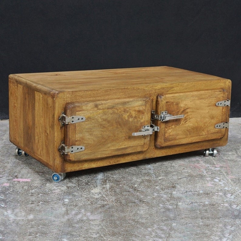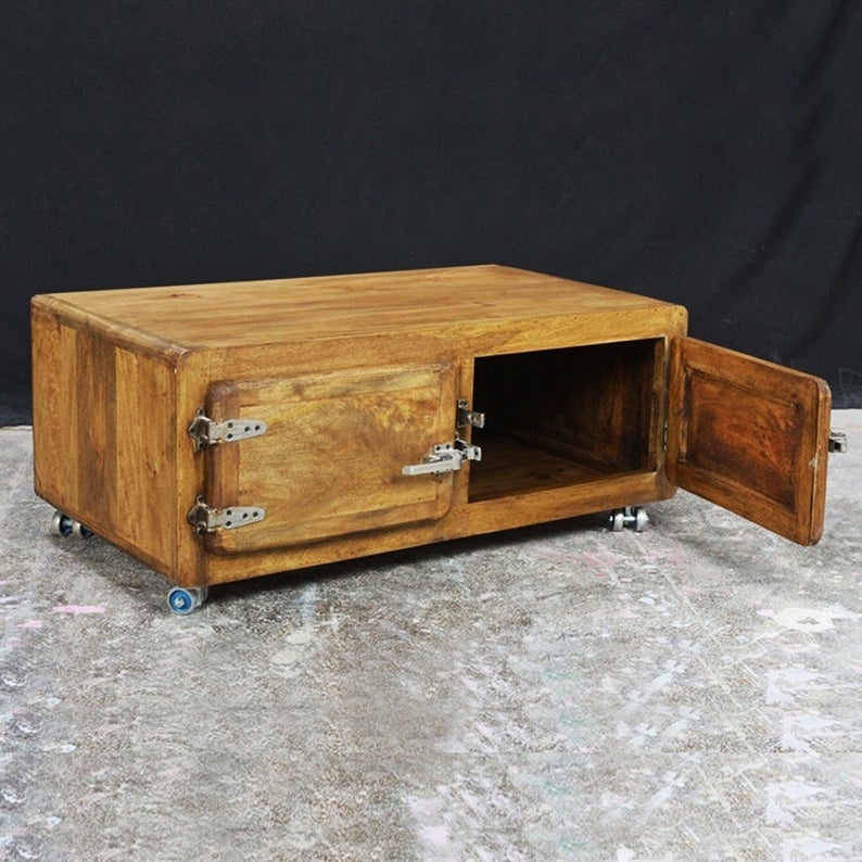 Cromer Solid Wood Fridge Door Rectangle Coffee table with storage on wheels