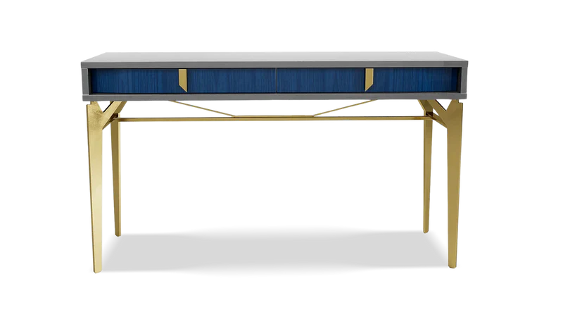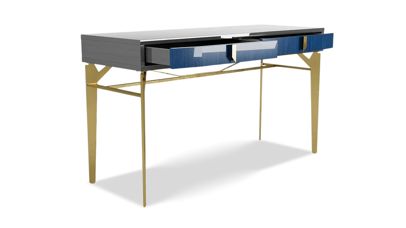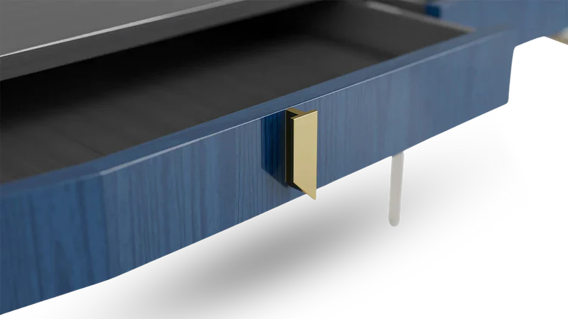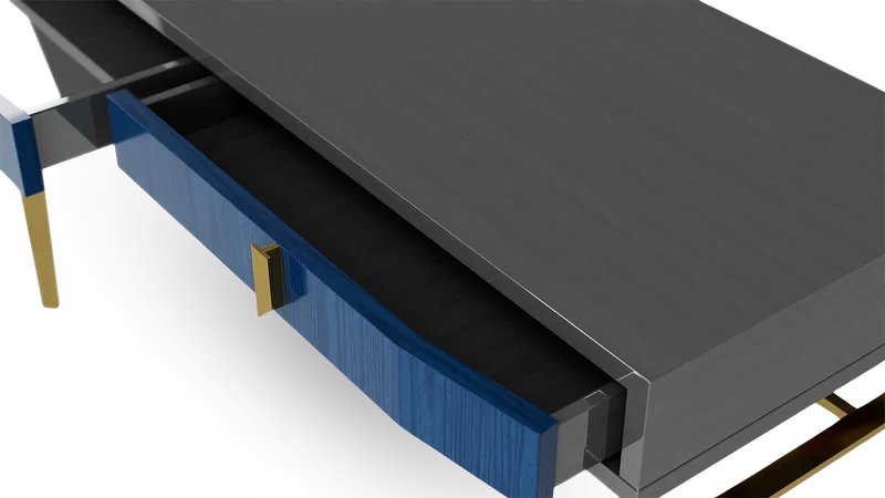 Get productive with our Hugo Blue solid wood desk. Beautiful, blue-tinted wood and gold-accented legs shine endlessly in this Hugo Desk. It’s spacious enough to accommodate your daily needs and flashy enough to draw any guest’s instant attention. The Hugo Desk is certainly eccentric and matches any modern office brilliantly.