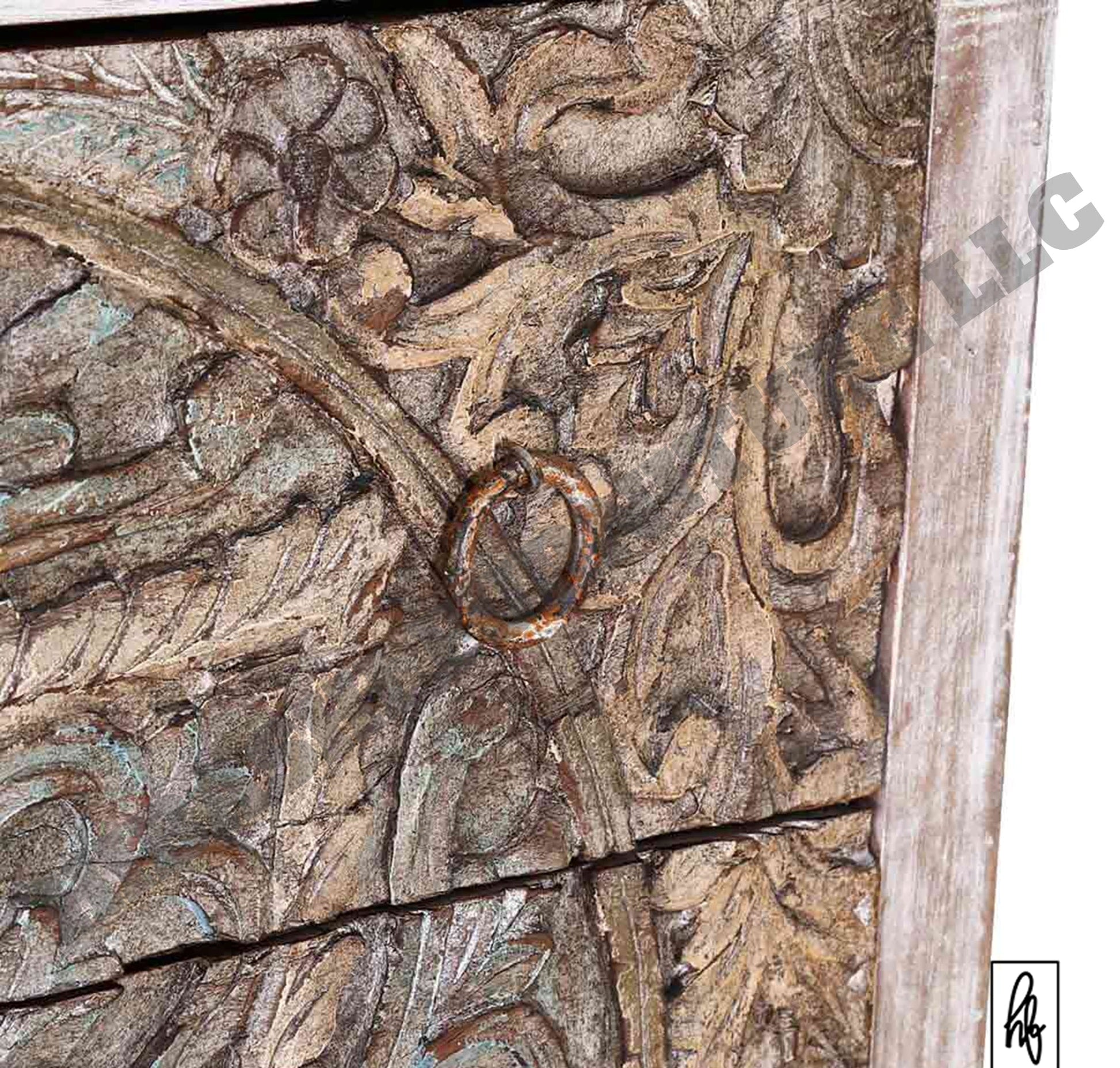 Majestic Floral Hand Carved Mango Wood Small White Dresser with 3 Drawers
