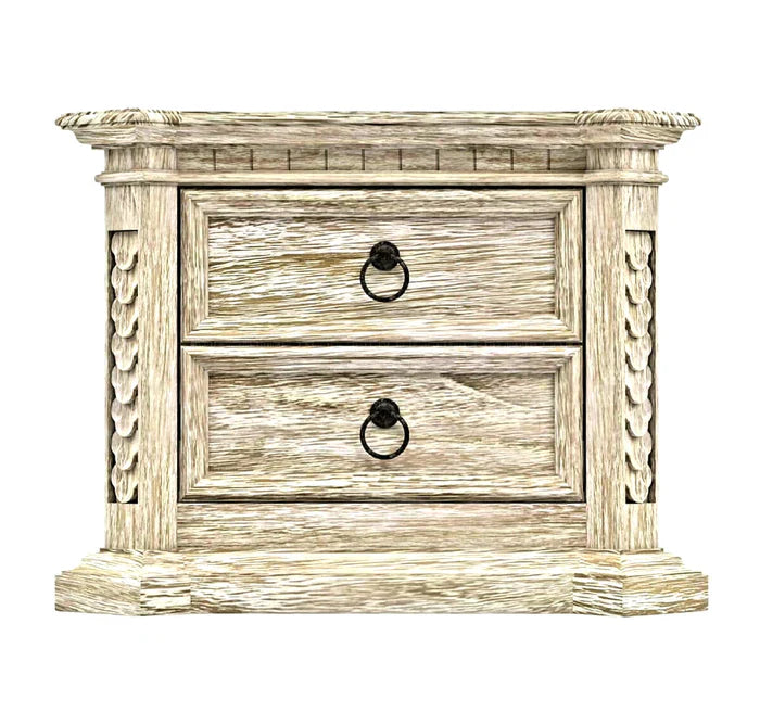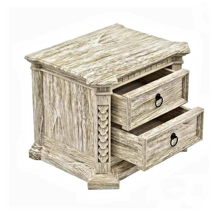 Nimbus Rustic Solid Wood Hand-Carved Nightstand With 2 Drawers
