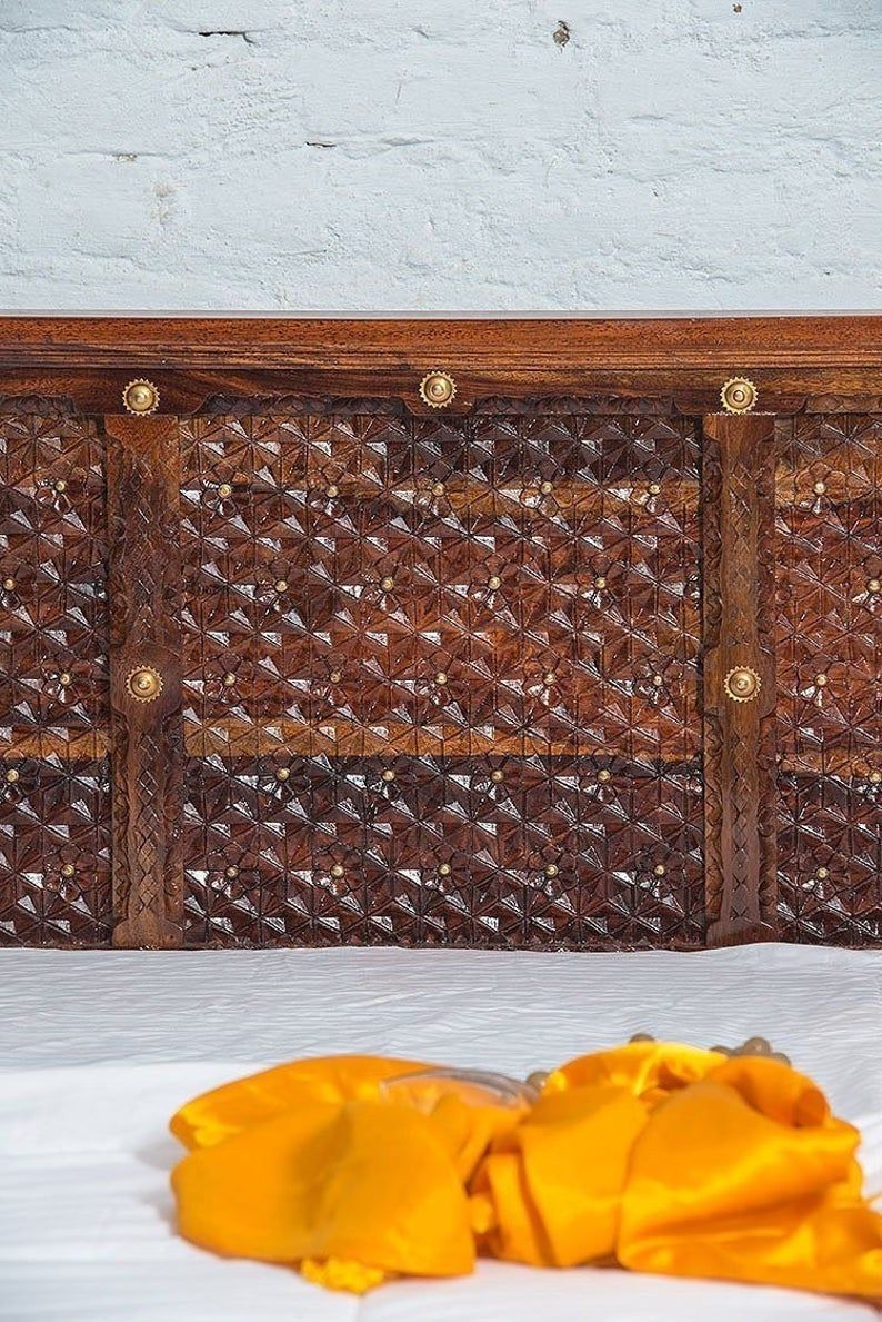 Embossed Antique Brass work Solid Wood Brass Panache Bed with Storage