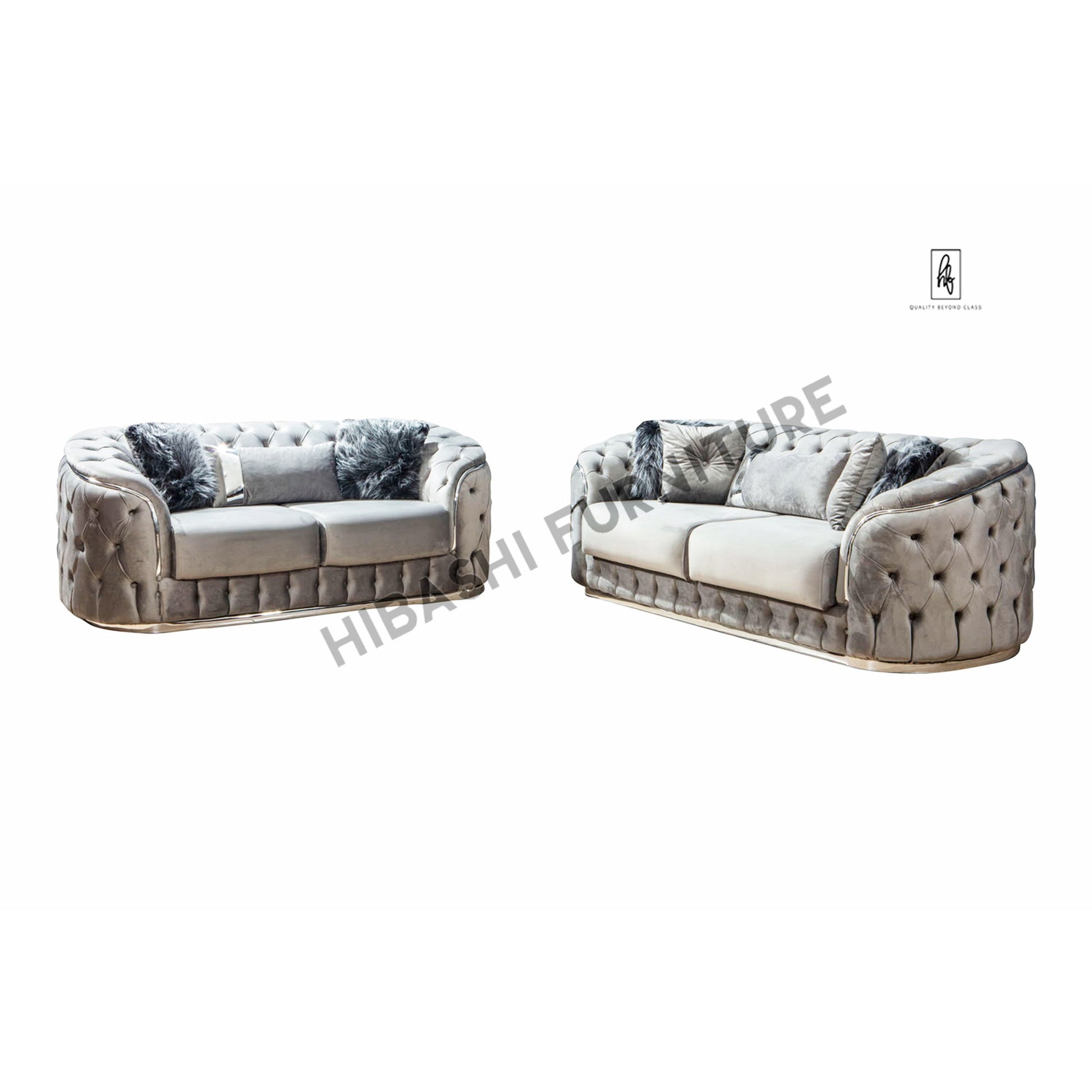 Velvet fabric brings out the glamorous features of this sofa enhancing the elegant details.