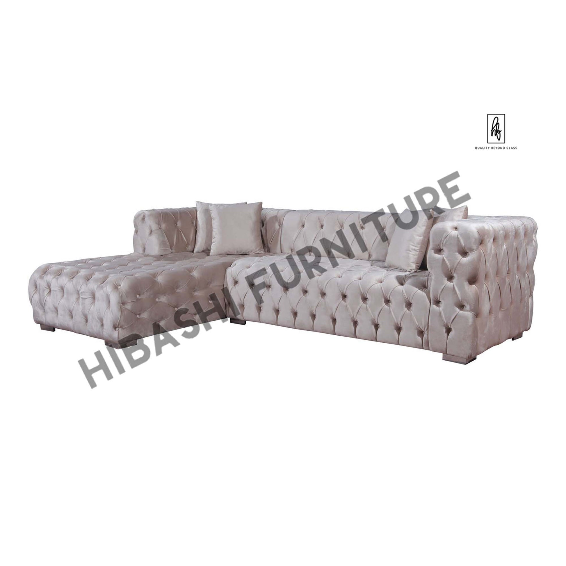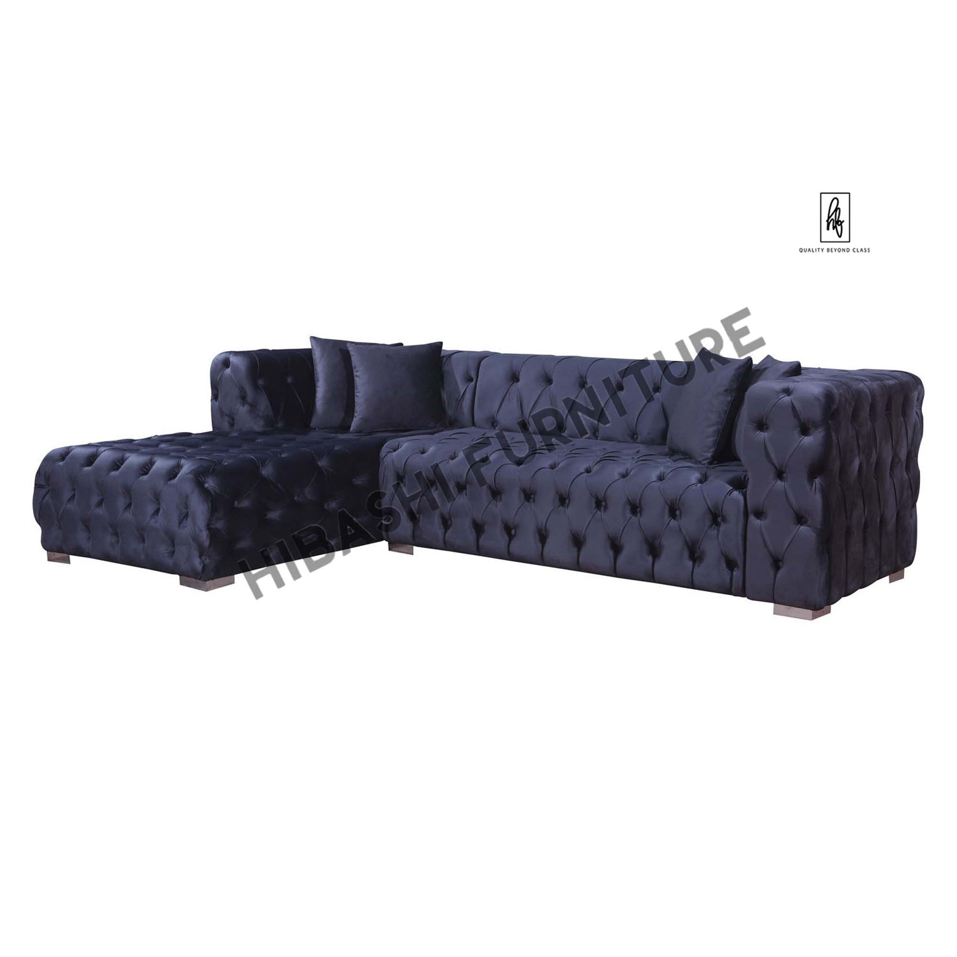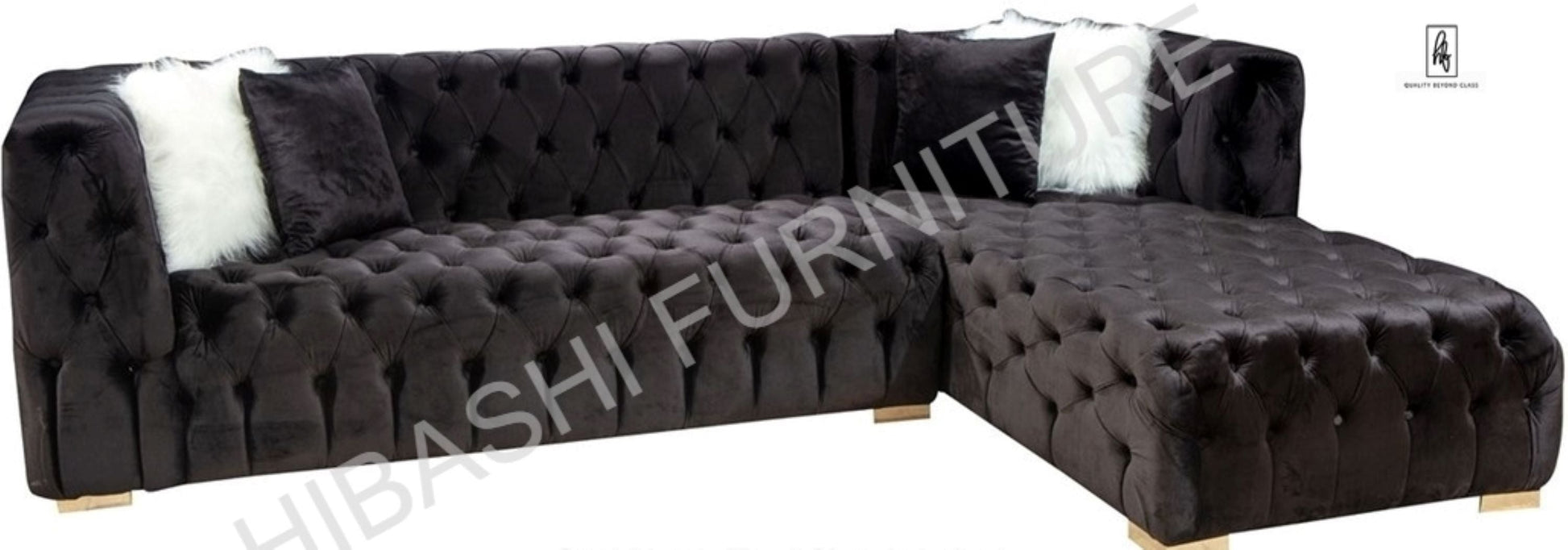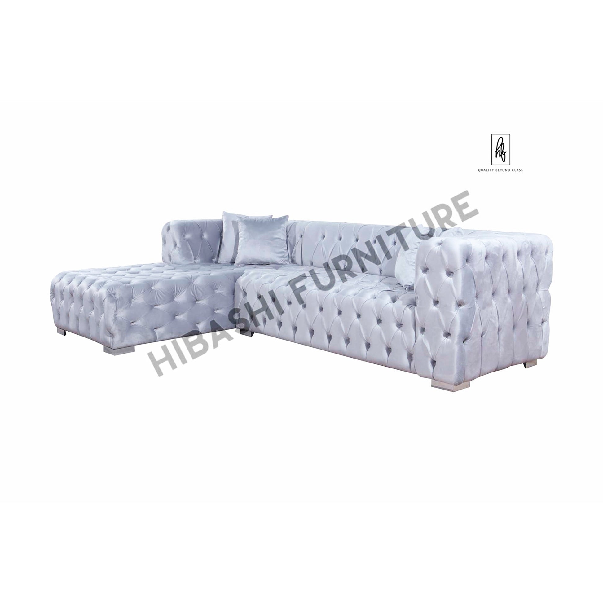 Velvet fabric brings out the glamorous features of this sofa enhancing the elegant details.