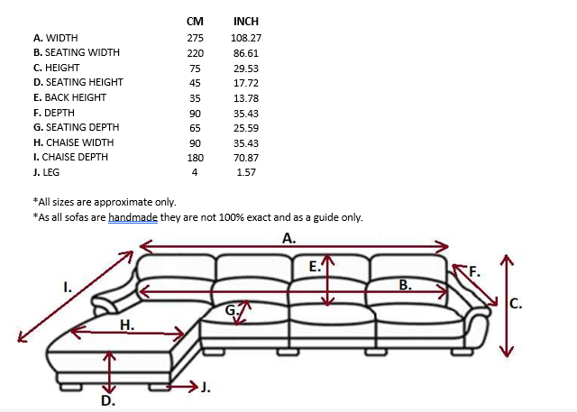 *As all sofas are handmade they are not 100% exact and as a guide only.